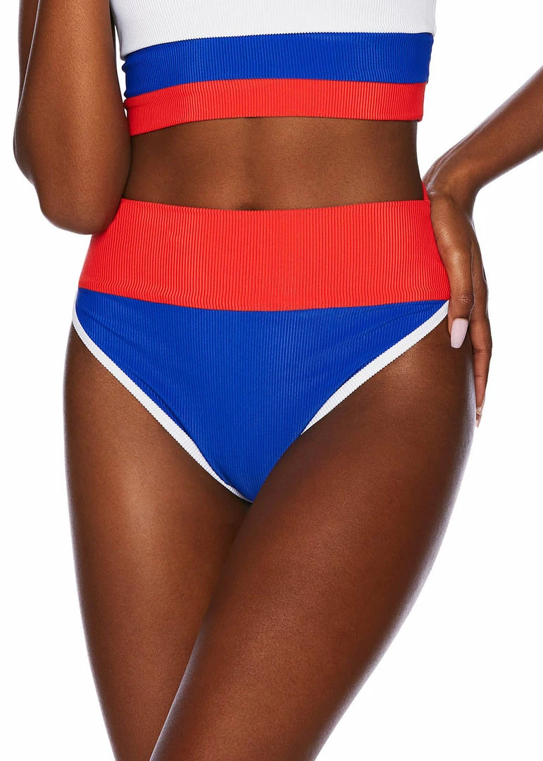 Beach Riot’s Emmy Bikini Bottom in American Colorblock is our best-selling hi-rise swim bottom. This high-waisted bottom provides moderate coverage and features our ultra soft ribbed fabric. Pair with the matching Eva Top.