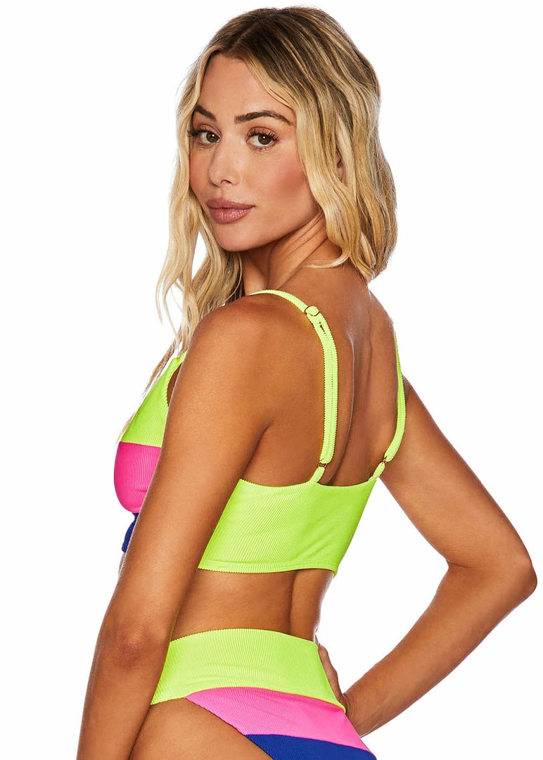 Beach Riot’s Riza Top built with adjustable straps and thick band for support with a classic triangle style front. This top features colorblocking in our ultra soft ribbed fabric. Make it a set and pair this top with the matching Alexis Bottom.Â