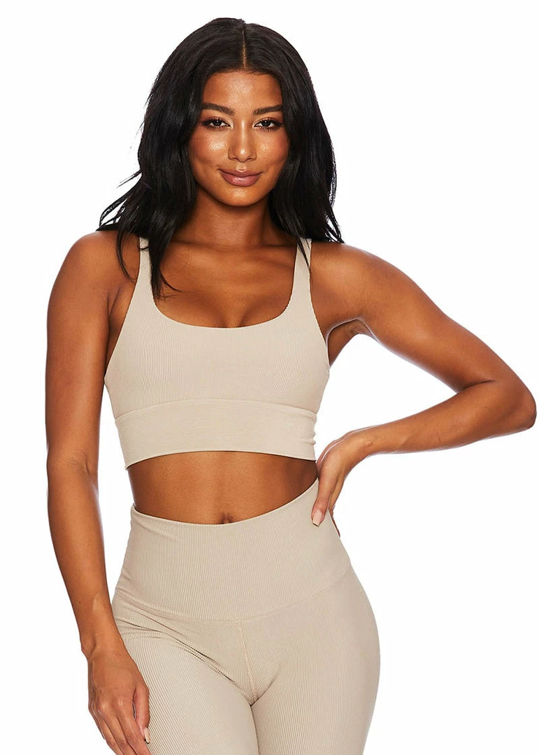 Beach Riot Leah Top is one of their best selling sports bras! Built with thicker straps it gives you medium support for some more rigorous classes. Comes in many colors but the Taupe is a perfect natural to match back to almost any active leggings in your wardrobe.