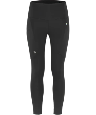 All the comfort of a legging but in a durable fabric that is ready to take you on a hike. Sustainable, comfortable, and attractive – what’s not to love about Fjallraven’s Abisko Tights? Created from a moisture-wicking stretch fabric in recycled polyester, they give a secure, snug feels that is further emphasized by the high waistband. We have also positioned the seams and designed the pockets for a flattering fit. Perfect for hiking and everyday outdoor life – the 7/8-length is easy to combine with socks and hiking boots.