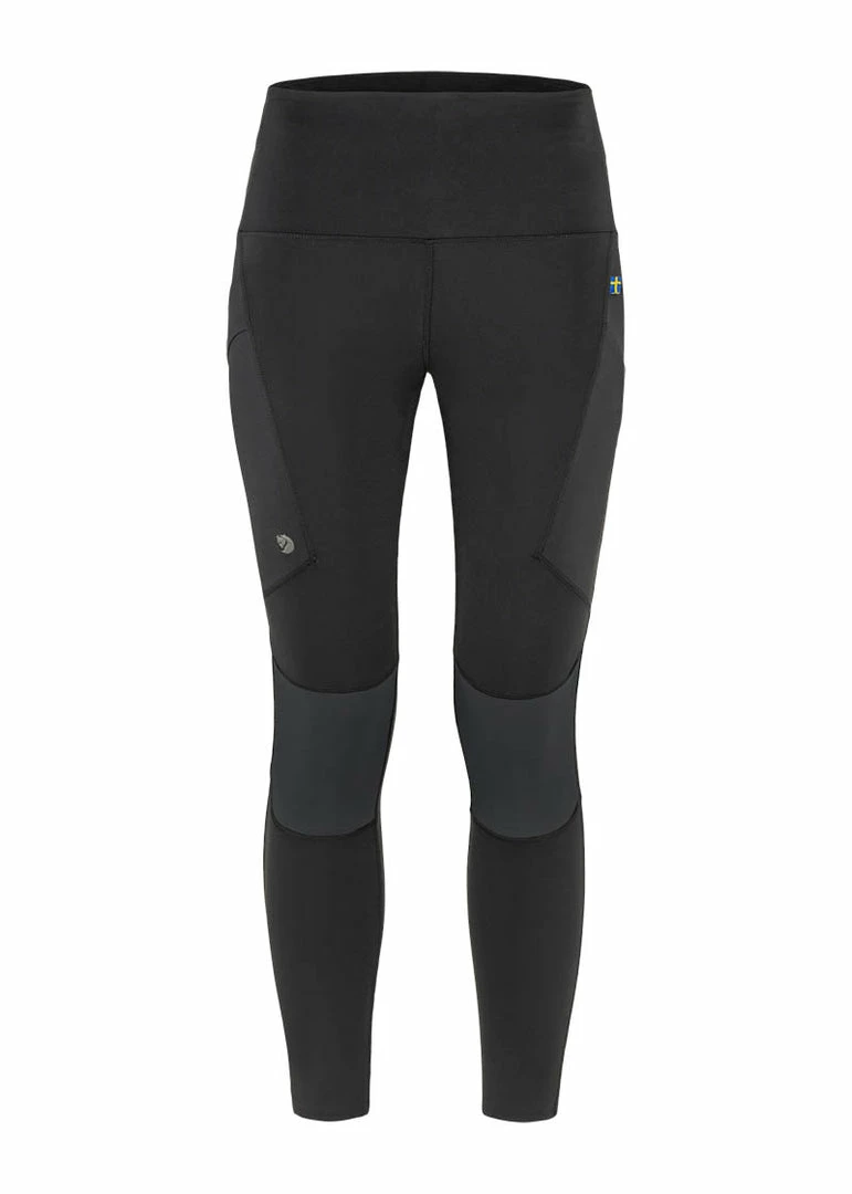 Abisko Trekking Tights Pro W are highly technical, made from a double-knitted, moisture-wicking stretch fabric with recycled polyester and a matte, opaque finish. The pockets are tilted for easier access and the 7/8-length legs fit really well with socks and hiking boots. Reinforcements in high-stretch Cordura offer extra protection in rough terrain or when sitting on damp ground.