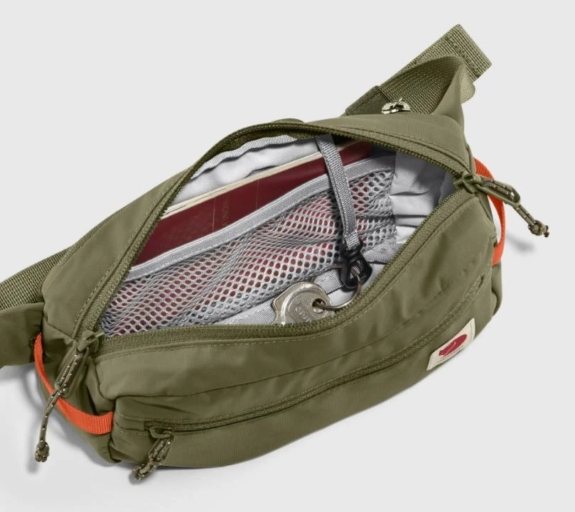 Light hip pack in recycled nylon, perfect for daytrips and traveling. Light, compact and perfect for all the small essentials you don’t want to leave at home – High Coast Hip Pack is a minimalistic hip pack in waterproof, 100% recycled nylon. It has a security pocket and ventilating mesh on the back. The zippered main compartment has an open pocket and key clip. It can be packed into its own pocket, so it takes minimal space in a bag or pack when it isn’t being used.