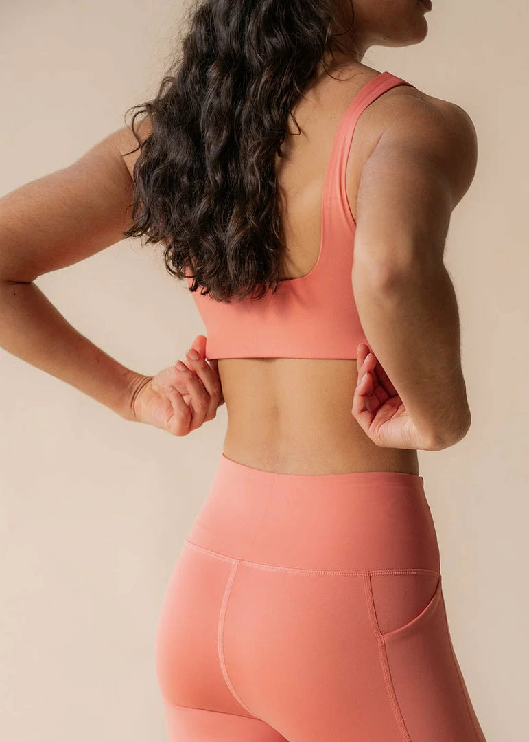 The Tommy Cropped Bra from Girlfriend Collective has an open square neckline, a low square back and a built-in support band that sits under your bust (kind of like on the Topanga, Lola or Juliet) and is perfect for getting you through those medium-impact workouts like boxing, biking or speed-walking home because you forgot your reusable coffee cup.