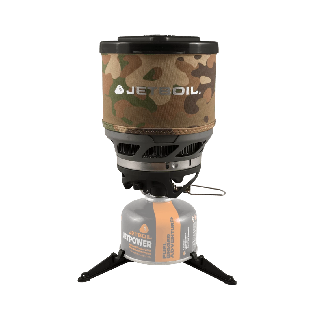 Ready to cook on the trail? Built with backpackers in mind, the MiniMo cooking system combines Jetboil’s tried-and-true efficiency and versatility with a convenient form factor. Powered by FluxRing technology, the MiniMo reaches a rolling boil in just over two minutes with half the fuel consumption of traditional systems. Jetboil’s proprietary regulator technology offers incremental heat adjustments from light simmer to full boil, perfect for sautéing, simmering sauces, and more. Metal handles and a redesigned FluxRing cooking cup—optimized for a low spoon angle—make the MiniMo the perfect vessel for personal cooking and eating. Start heating instantly with the convenient, reliable pushbutton igniter; save pack space with the clever sideways burner storage design. Includes fuel canister stabilizer and pot support; easy to pack and carry at only 14.6 ounces.
