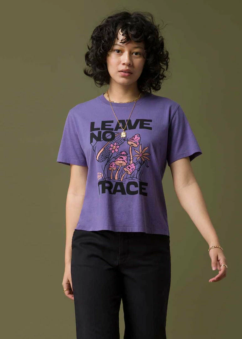 Parks Project Leave No Trace Trampled Shroom Boxy Tee is part of their boxy tee collection which are inspired by some of their favorite vintage looks. With a slight drop sleeved shoulder and a slightly shorter length than their normal Tee’s it is a great fit for any adventure. For a roomier fit we recommend sizing up.