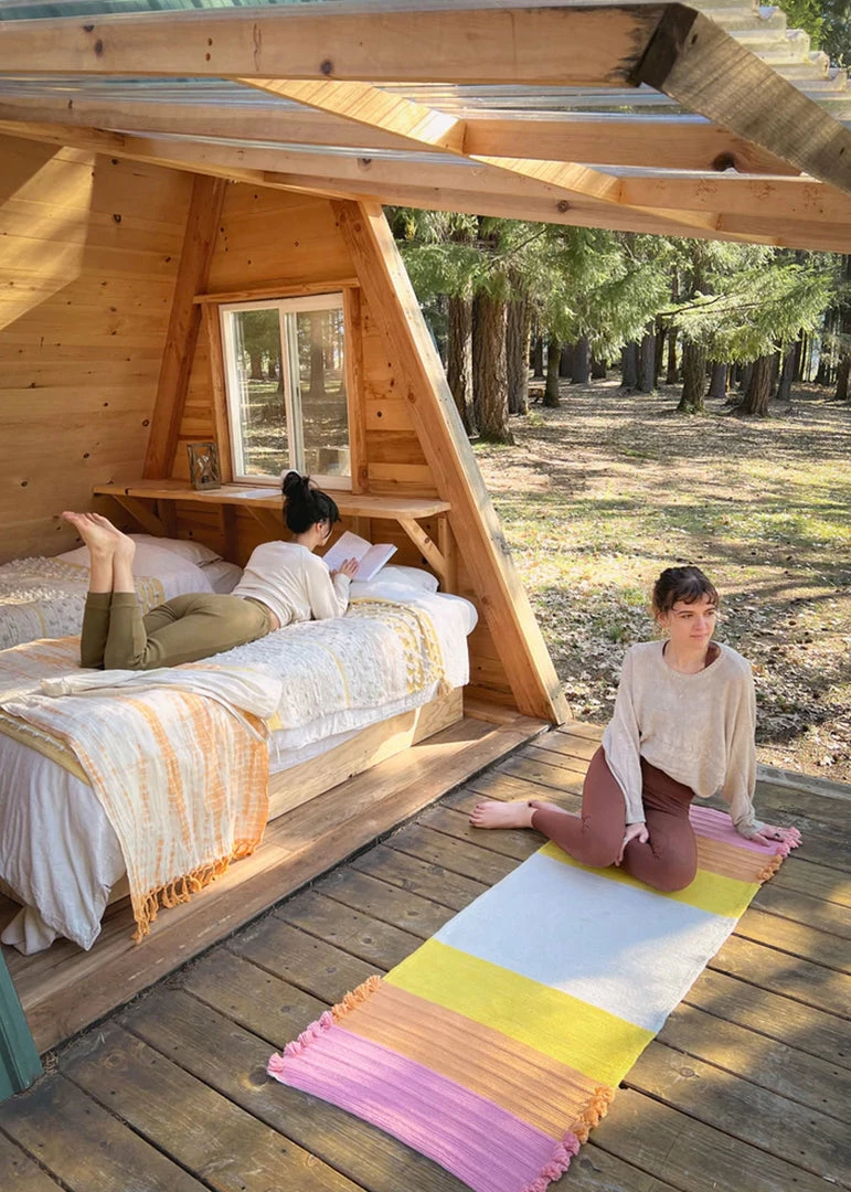 Unleash your potential with our herbal dyed yoga rug! Rejuvenate on the world’s most natural yoga mat. Each mat is hand-loomed with GOTS certified cotton and plant dyed using an ancient process that preserves the bioactive medicinal qualities of the plants. Feel the difference and experience your strength, balance, and wellness soar on the beautiful and ethically made mat.