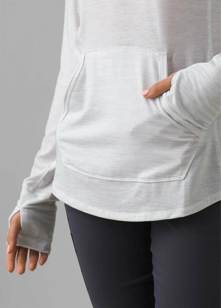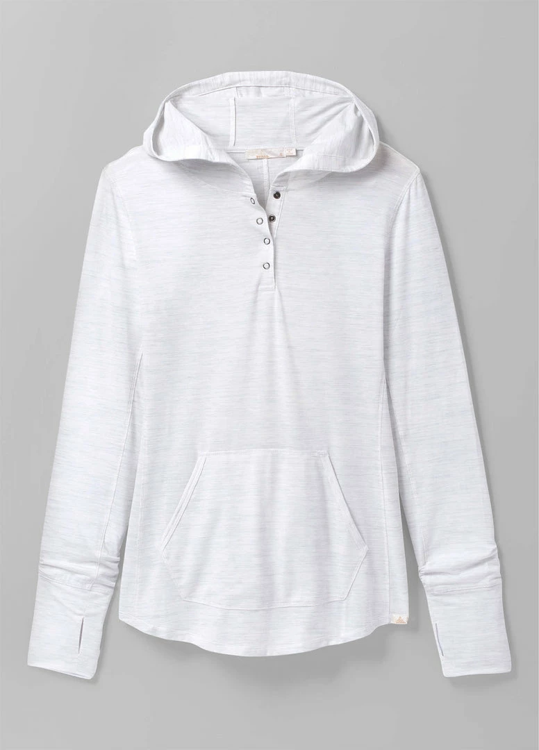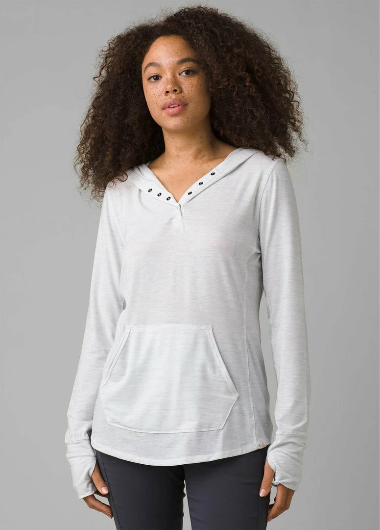 Prana also added a couple of features for modifiable warmth—snaps at the neckline and thumbholes in the sleeves for when you need more coverage on your arms. This makes our Sol Protect Hoodie a great option for hiking, biking, or simply chilling around the campfire.