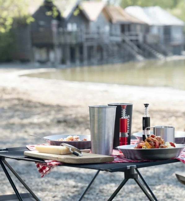 Give your outdoor cooking some extra flavor. A set of salt and pepper mill made of durable aluminum. Easy to operate with just one hand.