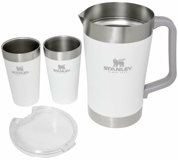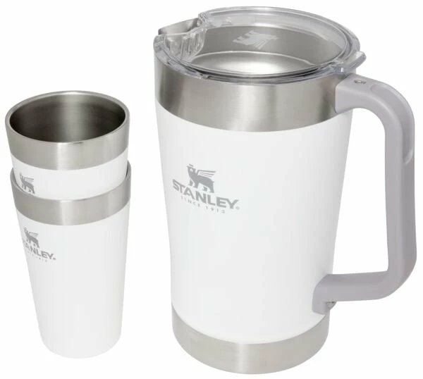 From RV adventures to camping trips to backyard BBQs by the pool, this versatile, stainless-steel insulated pitcher set is right at home. Fill the vacuum-insulated pitcher with cocktails, mocktails, iced tea, or even hot cider. The insulated pitcher keeps your drinks ice cold (or hot if that is what you are going for) no matter the temp outside. The rugged handle and pour-through lid make for easy serving into the matching insulated pint glasses. These sets make a perfect housewarming gift as well. Grab a set for yourself or for any friend that enjoys icy cold beverages. Cheers!