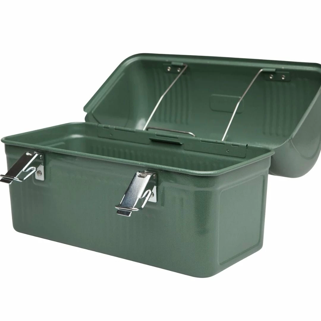 As far as vintage lunch boxes go, this one’s a real classic. Timeless design. Durable construction. And enough room to hold all your food (lunch, snack, second snack and more). There’s even a metal bracket just inside the lid that can keep your full-size Stanley Vacuum Bottle or Mug secure. We use ours to store cooking supplies for the campsite.Â