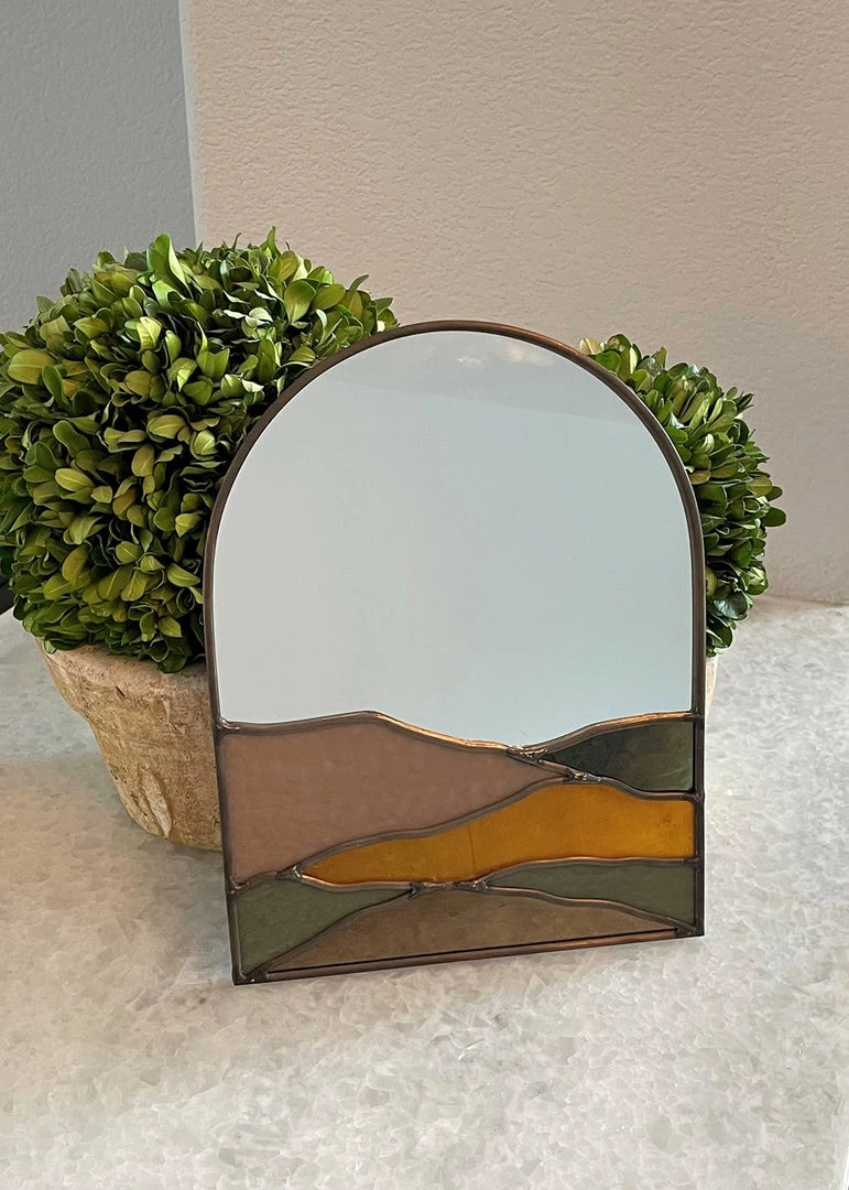 This stunning, unique, handcrafted mirror piece, designed by a local artist from our home state of Nevada is a one of kind design as a limited edition piece just in time for the holidays. We are excited to partner with SZKLO Glass to bring you a piece of art that is inspired by our love of the outdoors and in the mountains. Each piece of glass is hand-cut, assembled, soldered, and finished ready to hang. Whether you are purchasing for yourself or as a gift this piece is sure to become a beloved addition to any home. This piece is part of our small batch collection as we look to support and promote women-owned businesses here in the United States.