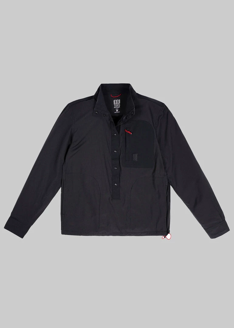 Let us put it in technical terms: the Tech Shirt Popover will keep you cool and dry on the trail and off. This lightweight piece packs down neatly and can be secured with the attached PackFast™ Packing Band. We added a zippered chest pocket and hidden handwarmer pockets for keeping your essentials close then finished the shirt with a single shock cord adjustment for an adjustable fit.