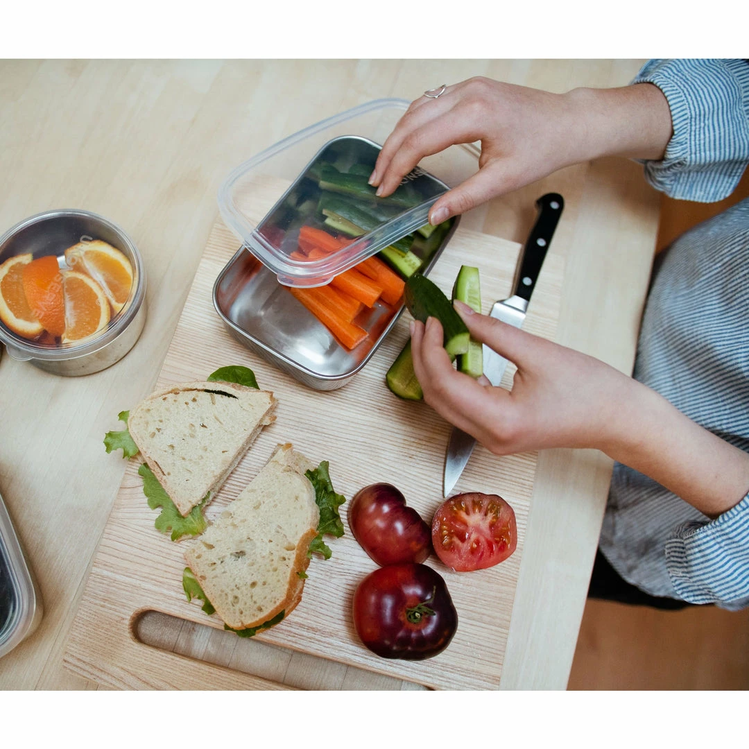 We love these for hiking and all of our outdoor adventures. These trusted stainless steel rectangle containers now come with plastic-free, clear-as-glass silicone lids! Perfect waste-free solution for lunches, takeout, picnics, travel, outdoor adventures, and bulk shopping. Pack snacks, lunches, and main meals while reducing single-use packaging. Ukonserve rectangle containers are also ideal for kitchen organization, pantry makeovers, meal prep, and family leftovers. This reusable bento-style lunchbox is versatile enough for many food-storage needs at home and on the go, while saving trash from our ever-growing landfills. Flexible silicone lids are easy for little hands to open, and the leak-proof feature keeps spills at bay. Our new non-toxic stainless steel and silicone combination make these lunchboxes the best zero-waste solution for you and the planet.