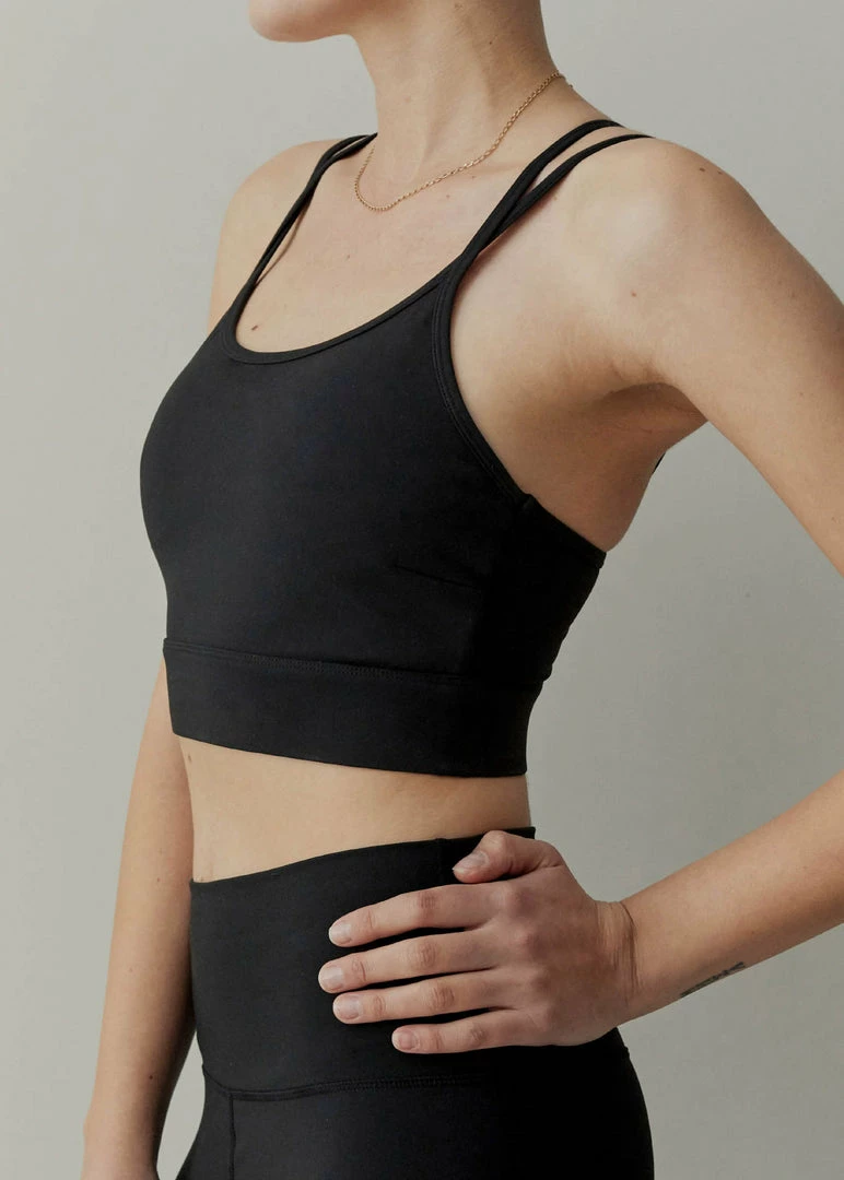 The Varley Frances Bra is made from soft, brushed Corelux fabric and features spaghetti straps that criss-cross in the back. This is a low support sports bra is lightly padded, with removable cups. The Frances bra might be best suited for low impact studio workouts like yoga and pilates but makes an ultra-comfortable everyday choice. Pair with the Whitley legging for the ultimate classic set.