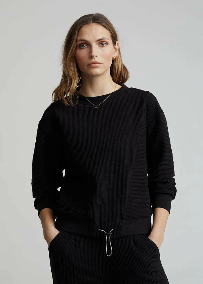 A refined take on the classic crew, the Arleta comes in luxurious wide-rib cord, designed to take you from barre to brunch and back home. A versatile addition to every active set, it features subtle, cross-grain panel detailing and an adjustable bungee and barrel toggle at the hem.