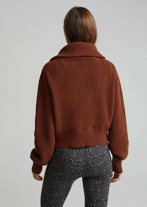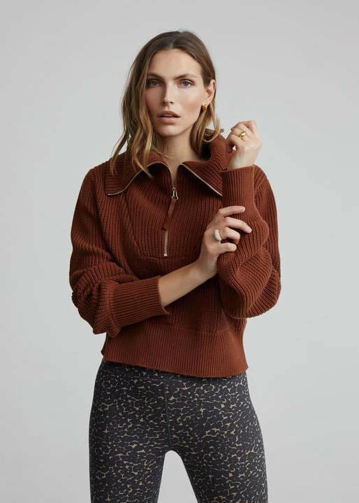 The Mentone is inspired by Varley’s Vine Pullover and available in their new chunky knit fabric. This half-zip style features a dropped shoulder, exaggerated collar, and boxy, slightly cropped silhouette.