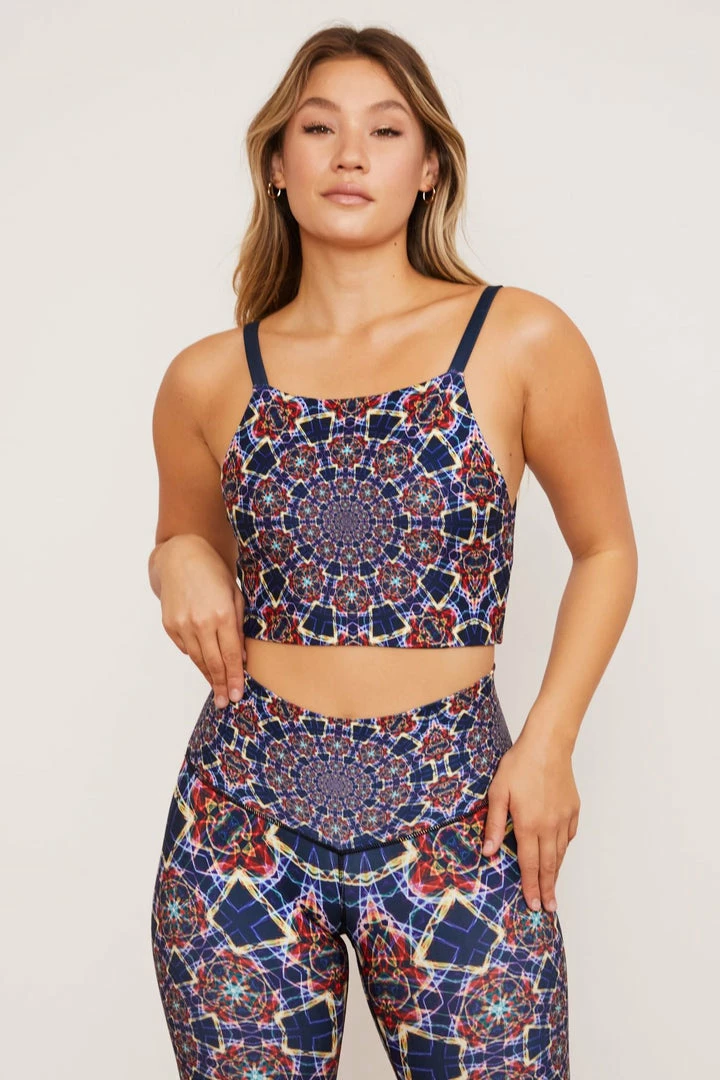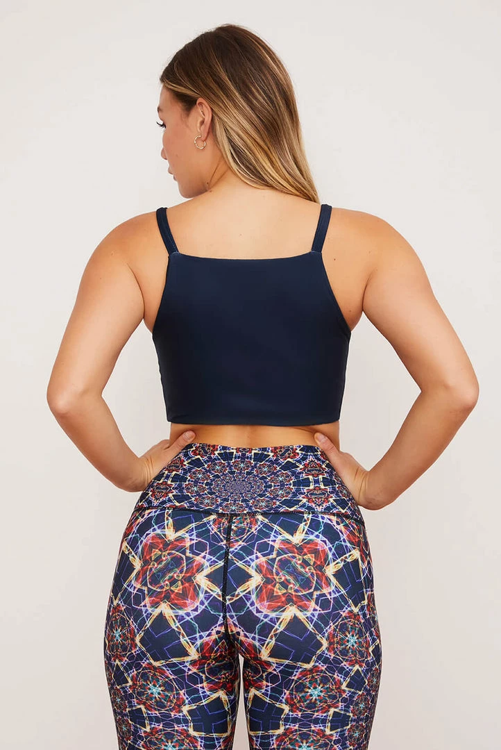 From yoga underneath the moonlit sky to casting spells on the dance floor, this dark blue mandala print will ignite the magic within. Pairs well with the