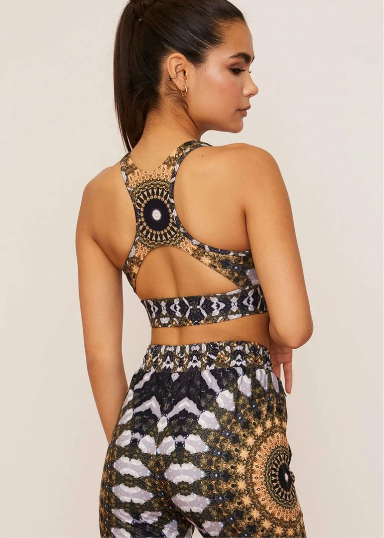 The Reverie print features a beautiful flower mandala inspired by Bali’s magnificent flora and fauna. Pairs well with the Noor Legging or to a solid with the turmeric.