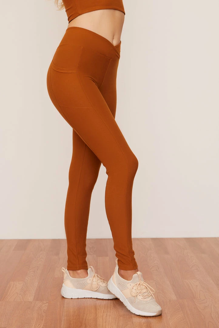 The Turmeric Pocket Legging is designed for a wearable golden hour. Just like its namesake, wearing this toasty hue supports mobility and may be known to fight a free radical or two. Pairs well with the Racerback Sports Bra in Tumeric