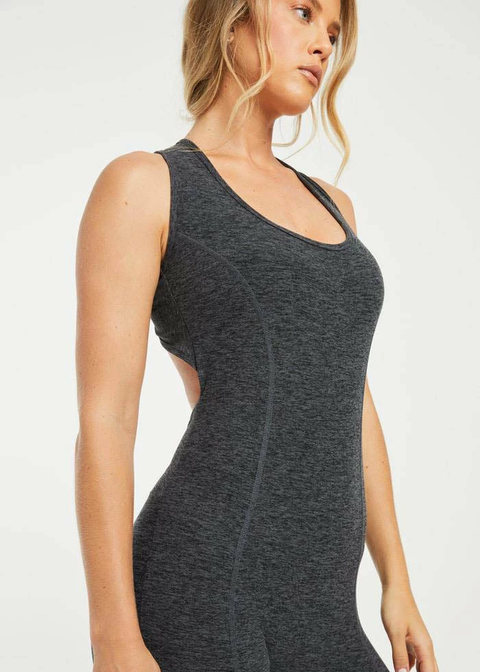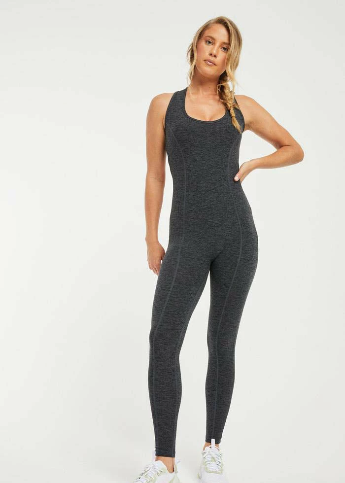 With a criss-cross open back and lined shelf bra, the stretch onesie is a full bodysuit for full movement. Princess seam details. Made with Stretch Active Fabric.