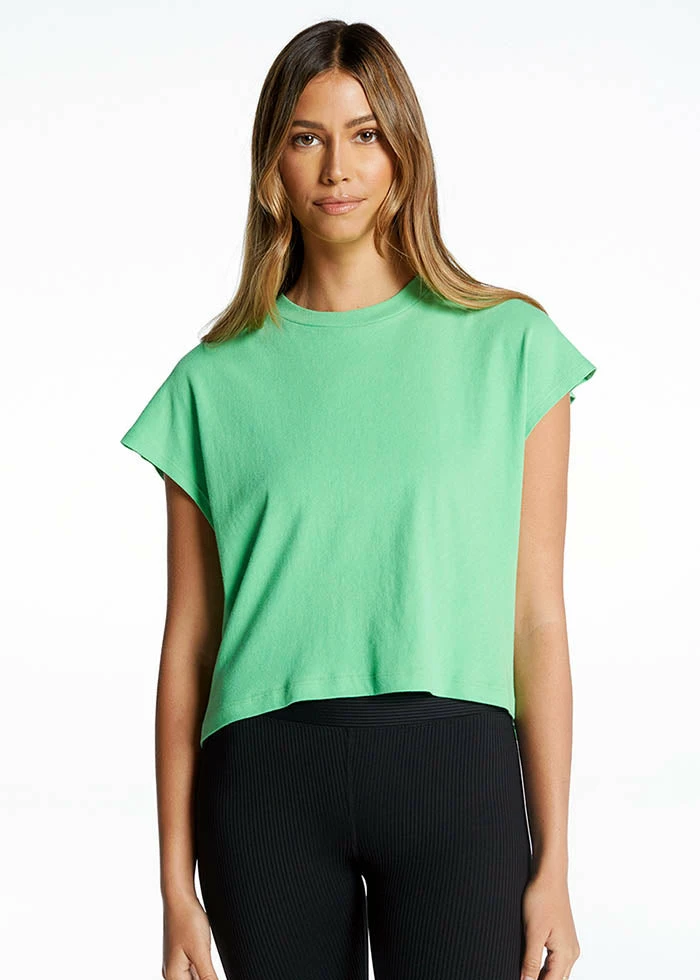 The Best Tee from Year of Ours is soft, unlined, full length, short sleeve. Need we say more? Made of 100% Cotton Jersey.